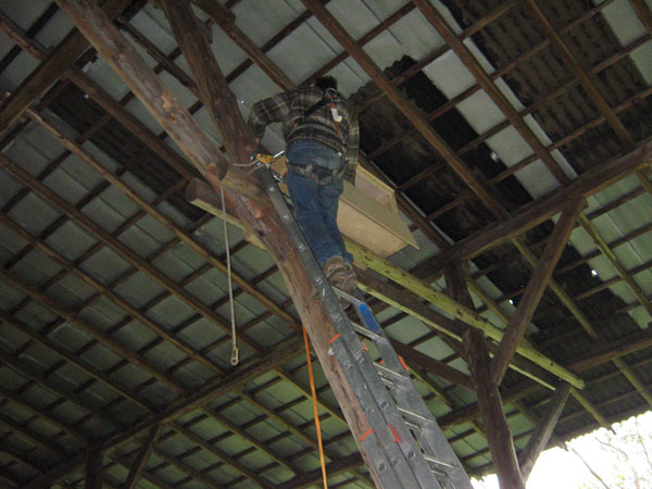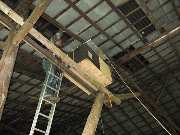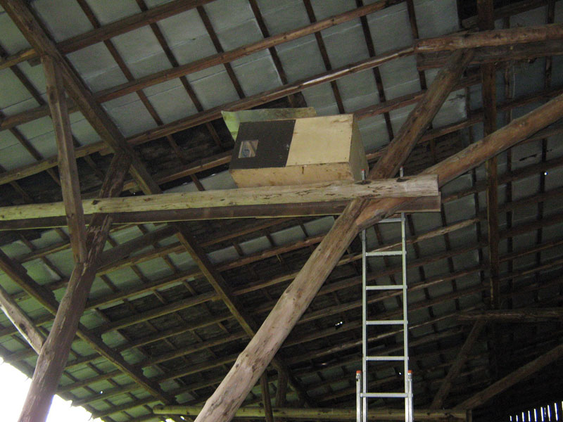 Schleiereulenkasten seit November 2014 unter einem Scheunendach von Haus Dürffenthal angebracht